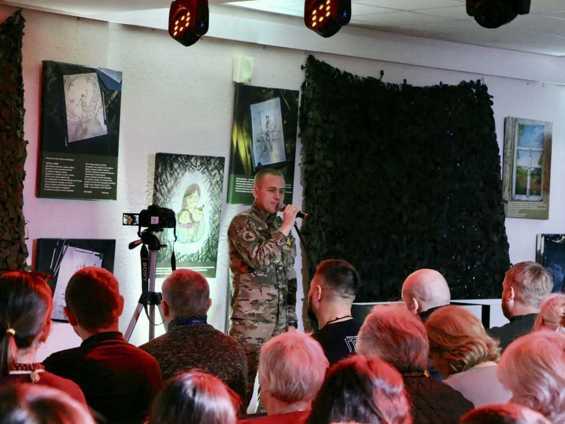 Автор экспозиции, приуроченной ко Дню защитника Отечества и Дню народной воли — военнослужащий с позывным Радагаст. Защитник выполняет задачи на Херсонском направлении. На его рисунках запечатлена фронтовая жизнь и сослуживцы.