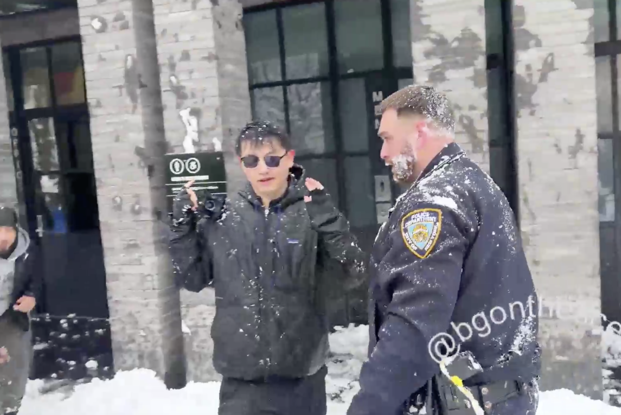 Полиция Нью-Йорка объявила в розыск двоих человек, которые во время массовой игры в снежки забросали полицейских снегом.