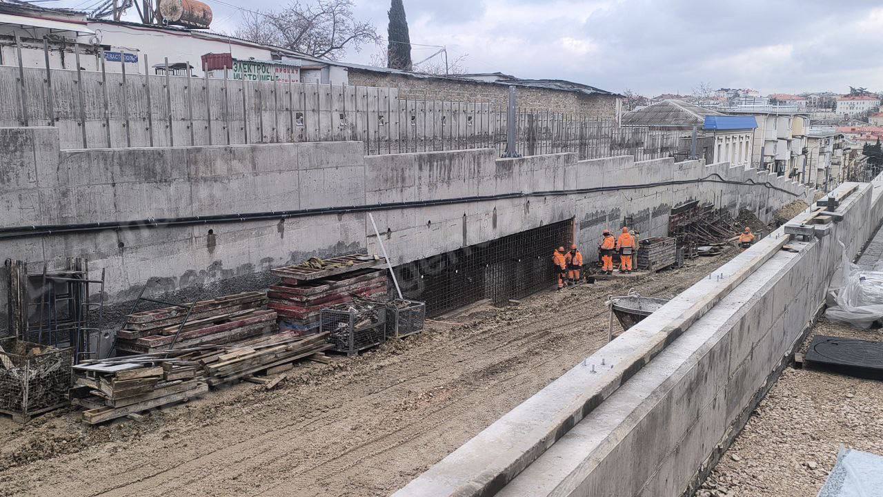 Готовность объекта 76%. Почти по всему периметру подпорной стены монтируют железный каркас. Он выполнен из нержавеющей стали с усиленными кронштейнами. Чтобы конструкция была прочной, надёжной и прослужила долгий срок. В завершении выполнят облицовку камнем. Сейчас строители приступили к монтажу гранитной плитки на тротуарах.
