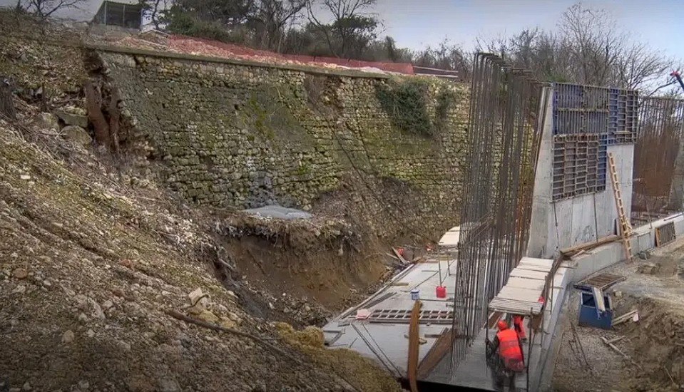 Параллельно ей возводят новую монолитную конструкцию. После — пространство между ними заполнят грунтом и на образовавшейся сверху террасе обустроят большую смотровую площадку.