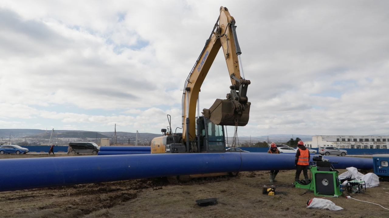 Работы начались на улице Лесопарковой и в районе водоочистных сооружений. Трубы из специального высокопрочного полиэтилена укладывают на глубину двух метров. На капитальный ремонт выделен 1 миллиард из федерального бюджета и 300 млн рублей предоставило государственное предприятие «Вода Крыма».