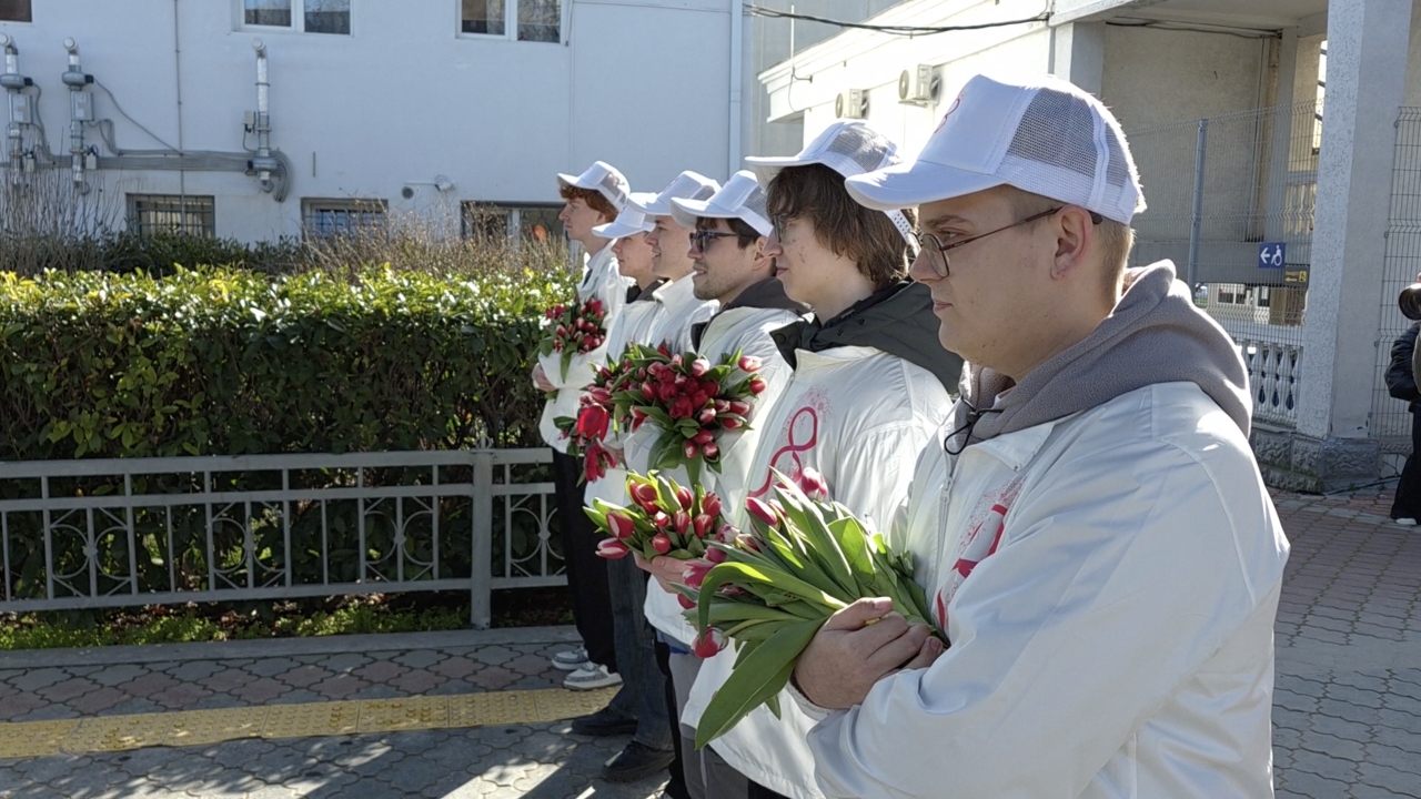 «Вам, любимые!». В преддверии Международного женского дня волонтёры Севастополя одарили девушек тюльпанами.