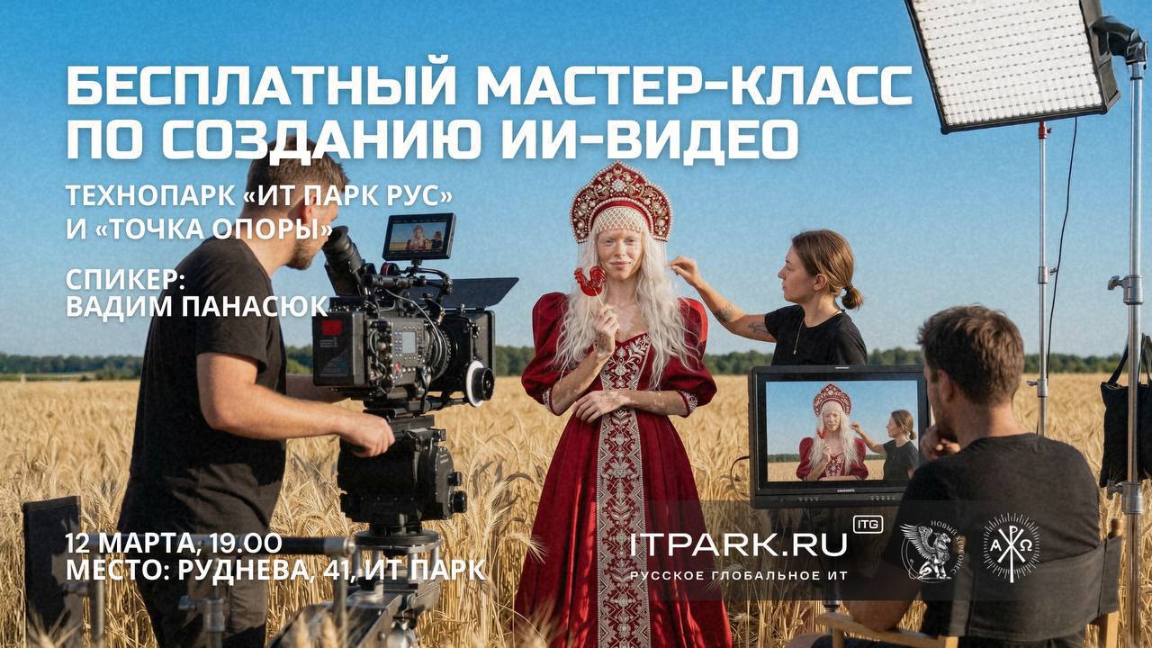 Проведет его Вадим Панасюк — резидент ИТ Парка, профессиональный фэшн-фильммейкер и основатель школы фильммейкинга с гарантией трудоустройства. Он работает с брендами из Дубая и Москвы, спикер ITPARK FEST 2025.