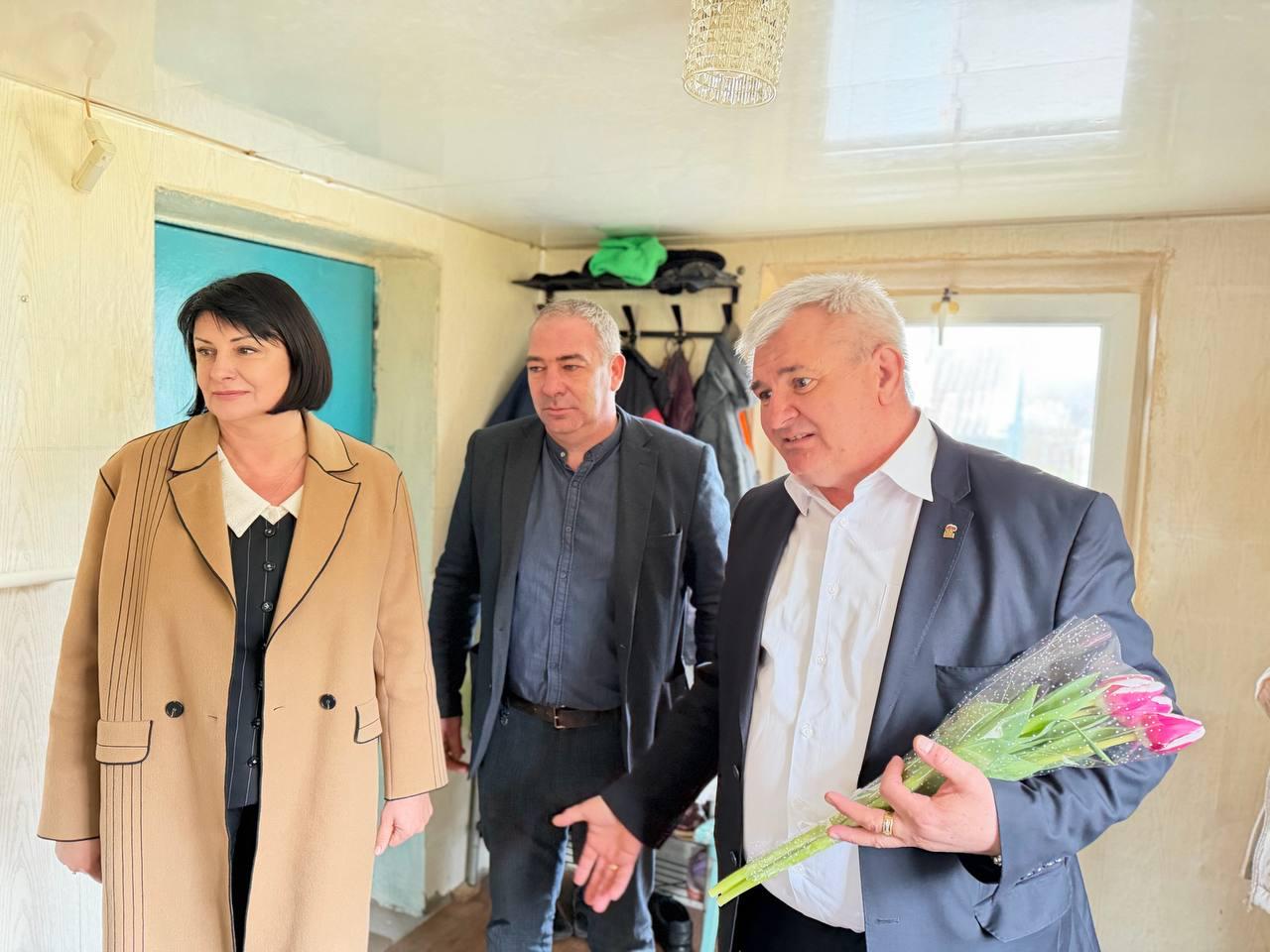 Поздравили женщин с праздником, вручили цветы и сертификаты на приобретение лекарственных средств.