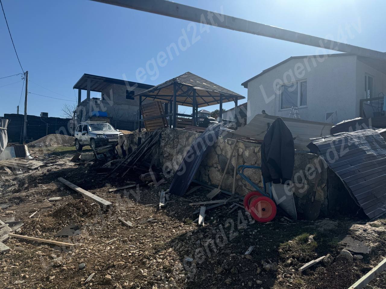 Сбитый беспилотник упал на территорию частного дома в СТ «Гранат». Он был начинён поражающими элементами – металлическими шариками и взрывчаткой, повреждены 2 автомобиля, цистерна с водой, выворочен забор, выбиты стекла, стена внутри дома дала трещину.