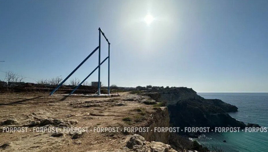 На обрыве мыса Фиолент в Севастополе появились качели на бетонном основании