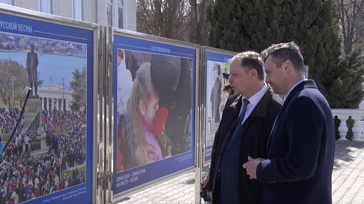 На набережной Корнилова в Севастополе открылась фотовыставка «Русская весна», посвящённая 12-й годовщине воссоединения с Россией.