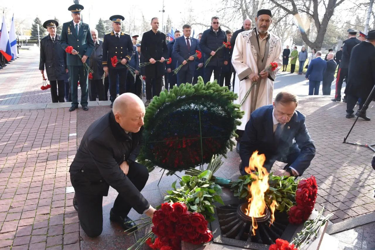 Сегодня утром возложили венки и цветы к вечному огню Мемориала героической обороны города 1941-1942 годов.