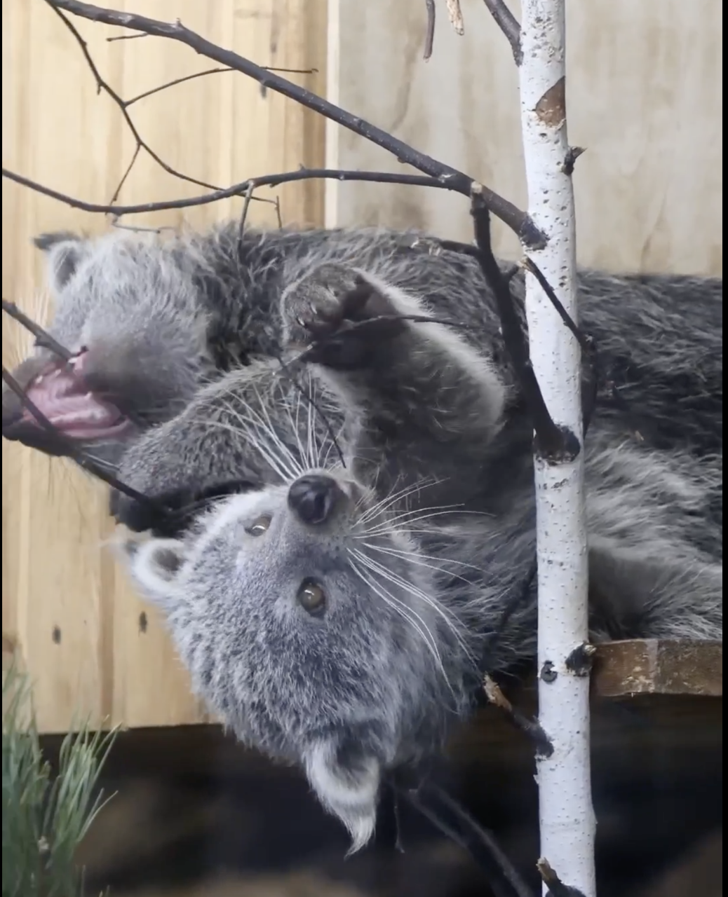 В Новосибирском зоопарке подрастают детёныши бинтуронгов. Этих зверьков называют «кошками-медведями» за необычный окрас и очаровательную неуклюжесть. Маленькие проказники устроили настоящий переполох в своём вольере. Они с интересом обследовали территорию, залезали в свои домики и весело играли, забавно гоняясь друг за другом, сообщили в пресс-службе Новосибирского зоопарка.