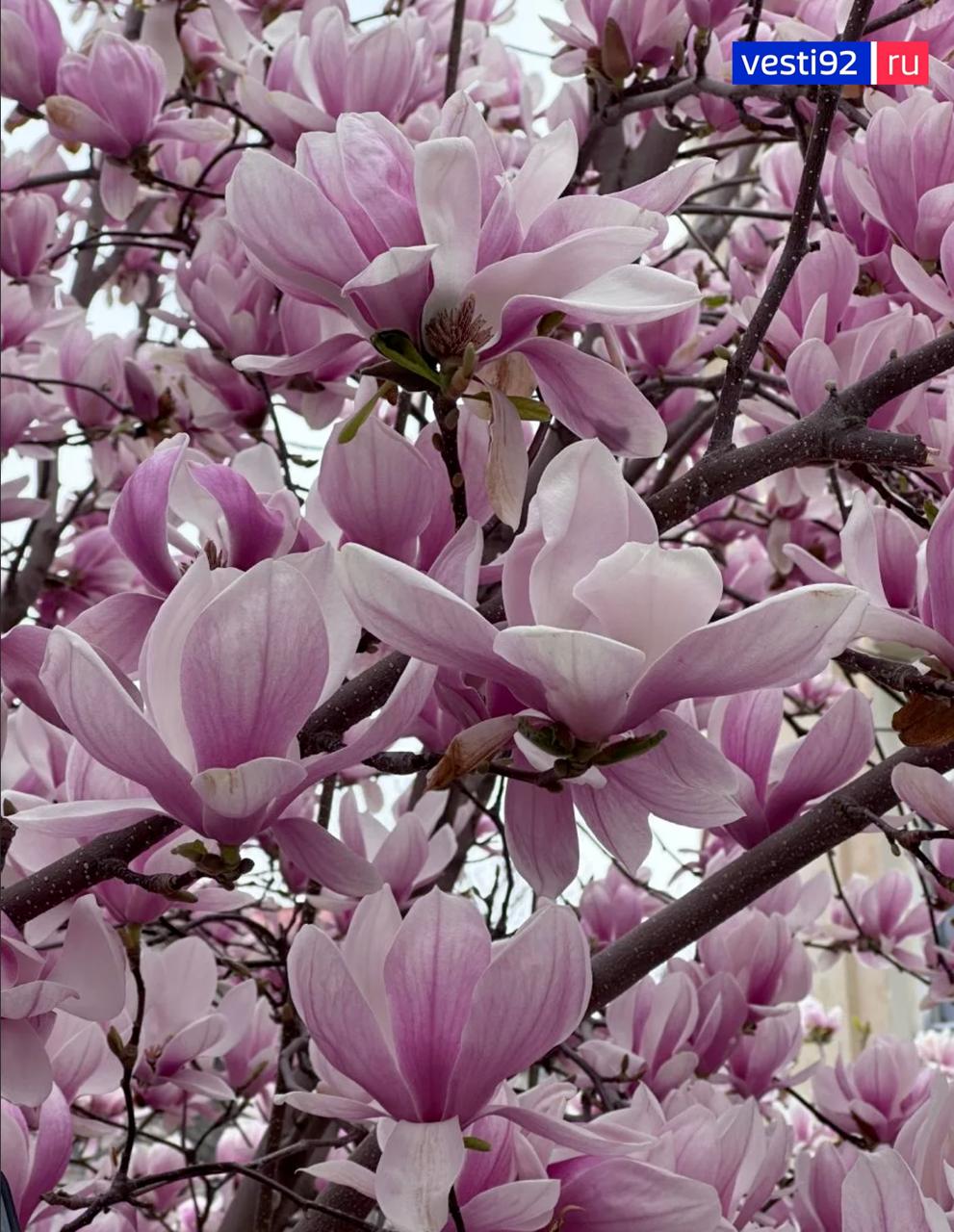 А на городских клумбах распускаются тюльпаны, продолжает цвести магнолия.