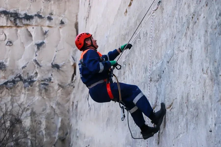 Спасатели тренировались спускаться и подниматься по вертикальным перилам, а также перемещаться по горизонтальным — такие навыки необходимы при работе в горах.