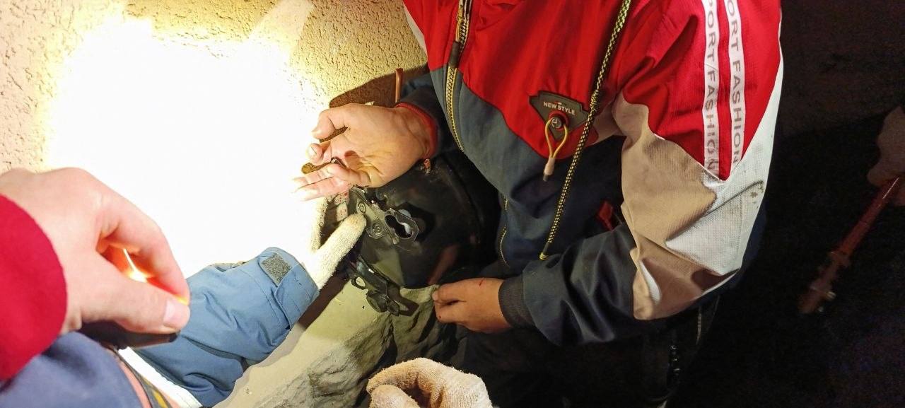 "В службу спасения поступило сообщение о том, что у ребенка застряли пальцы руки в металлической конструкции (компрессор от холодильника)".