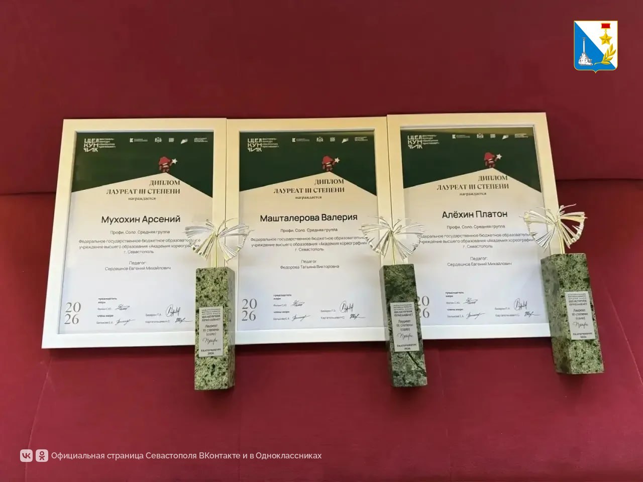 Воспитанники Академии хореографии Севастополя Валерия Машталерова, Платон Алехин и Арсений Мухохин стали лауреатами III степени.