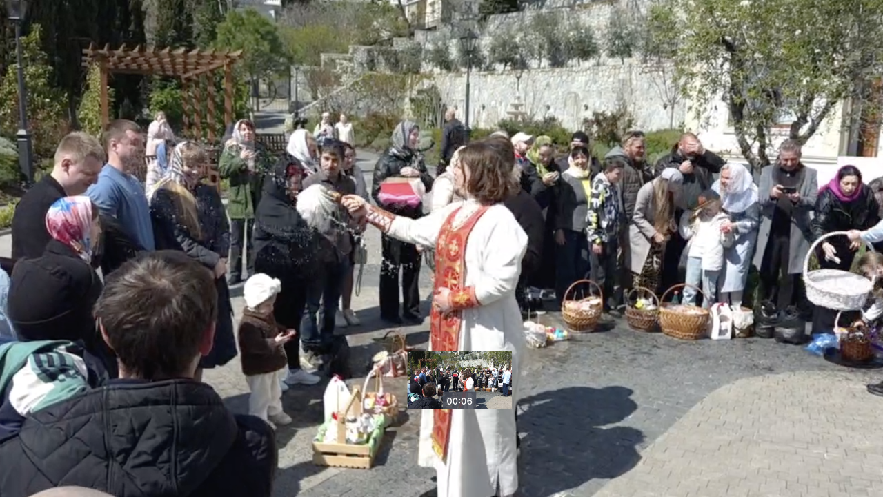 Праздничное настроение царит у храма Архангела Михаила в Алупке: верующие собираются семьями, дарят улыбки и тепло. Люди делятся радостью о Воскресении Христовом. Пасха объединяет крымчан в общей молитве и светлом торжестве.