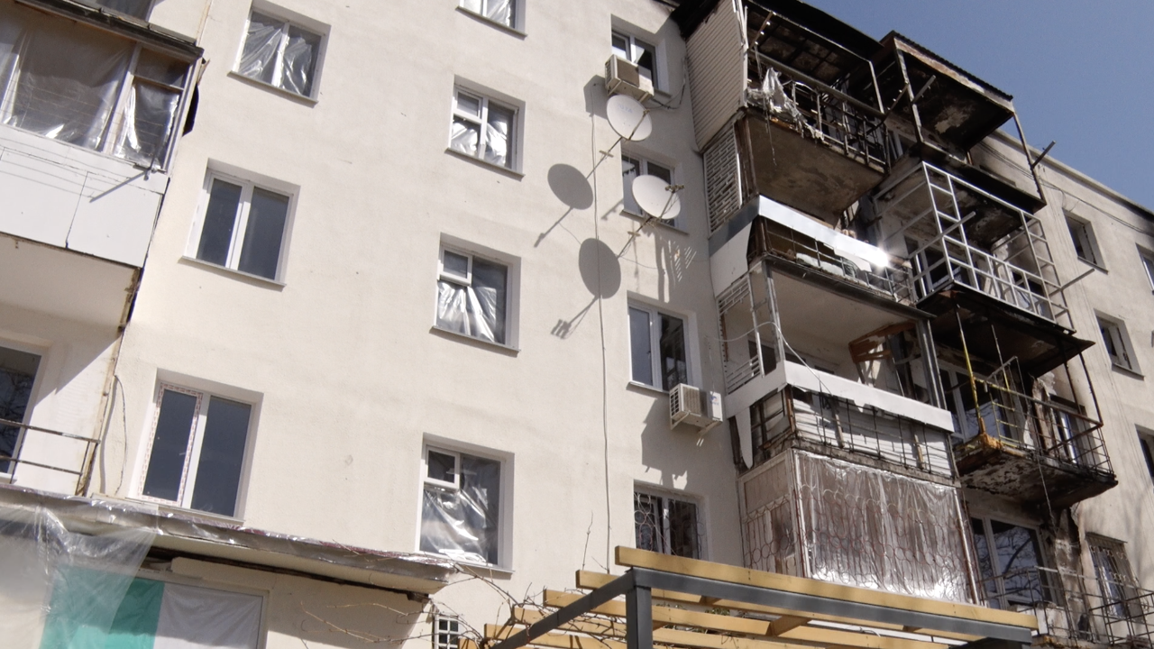 В пострадавших от взрыва домах на улице Павла Корчагина в Севастополе продолжают остеклять окна в квартирах. На очереди — подъезды и балконы.