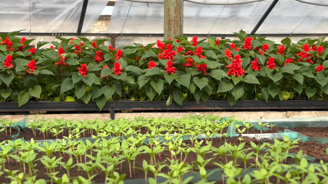 «У меня по левую сторону первый посев летников – сальвия, который был высеян 27-28 января. На сегодняшний день это готовая рассада для посадки в клумбы. Сальвия любит более щадящий режим, немножко притенения. Вот именно на этой клумбе, где фонтаны, создают условия для хорошего произрастания этого растения – сальвии», — рассказала агроном ГБУ «Парки и скверы» Надежда Дятел.