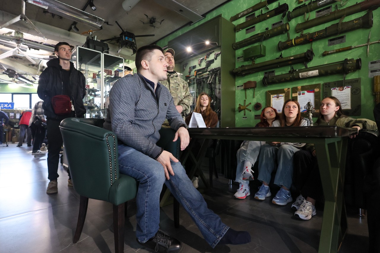 Место выбрали не случайно – здесь расположен музей спецоперации, который создавали участники боевых действий. Ребятам провели экскурсию – в экспозиции представлено свыше 2000 предметов, среди которых – образцы российского вооружения и трофейные, захваченные в бою. Большую часть экспозиции занимают дроны.