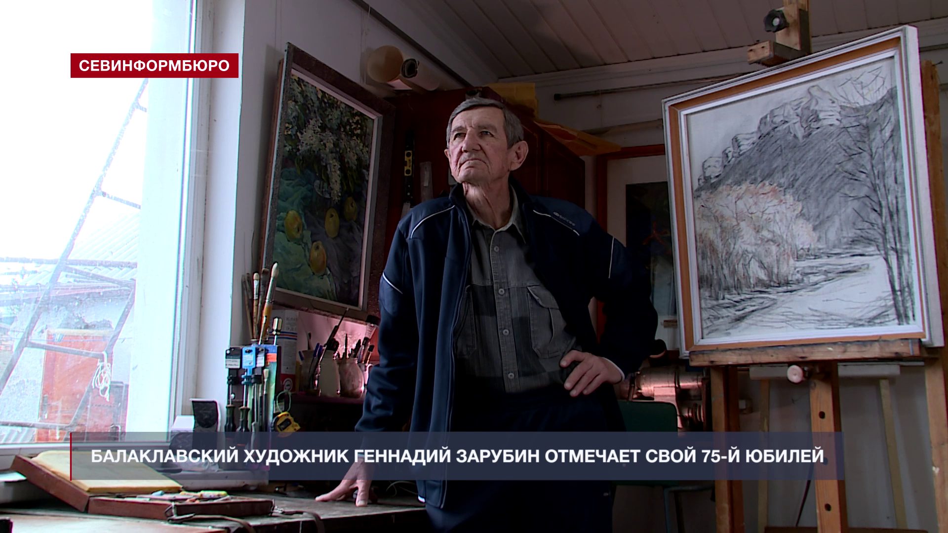ТАТЬЯНА МИХНО, балаклавская художница: «Вы знаете, вот есть такое отличие от, может быть, от многих мастеров искусства. Он пишет скалы, утёсы, горы, у него настолько такой лучезарный строй краски, оно всё играет, оно всё оживает, потому что обыкновенным глазом человек может не увидеть, это излучение, преломление света, луч солнца. Он это всё улавливает, всё он это показывает. Ну и, естественно, у него такой дар композитора, можно сказать. Композиционно он очень хорошо пишет и Балаклаву, и эти горы, и скалы, всё очень хорошо. Но больше всего мне нравится его натюрморты».