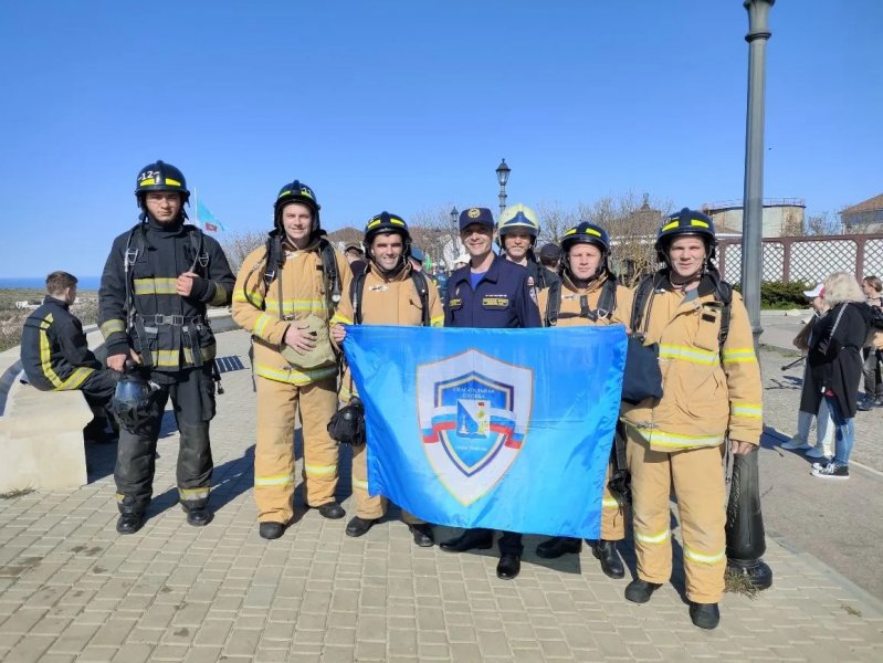 Участникам предстояло преодолеть почти 800 ступеней на мысе Фиолент в полной боевой экипировке — в пожарной одежде и с включением в аппарат для защиты органов дыхания и зрения.