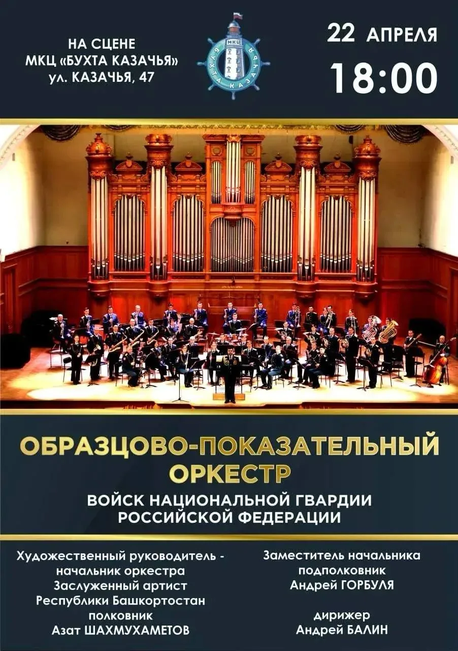 22 апреля на сцене МКЦ «Бухта Казачья» выступит Образцово-показательный оркестр войск национальной гвардии России. У вас есть шанс попасть на концерт бесплатно!