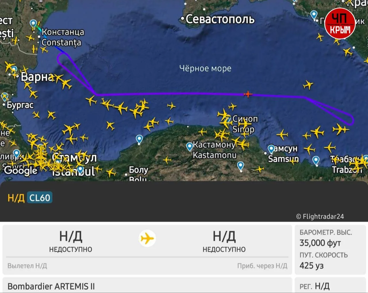 ЧП/Крым сообщает , что самолет-разведчик НАТО ведет агрессивное исследование над акваторией Черного моря