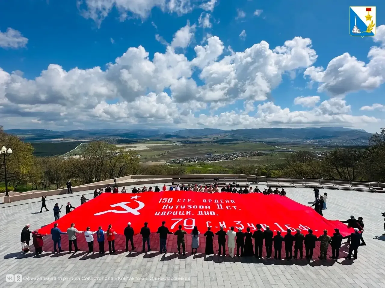 На Сапун-горе развернули копию штурмового флага 150-й стрелковой дивизии. В мероприятии участвовали представители Правительства Севастополя и Дагестана, ветераны, участники программы «Севастополь — город героев», члены Общественной палаты и молодёжь.