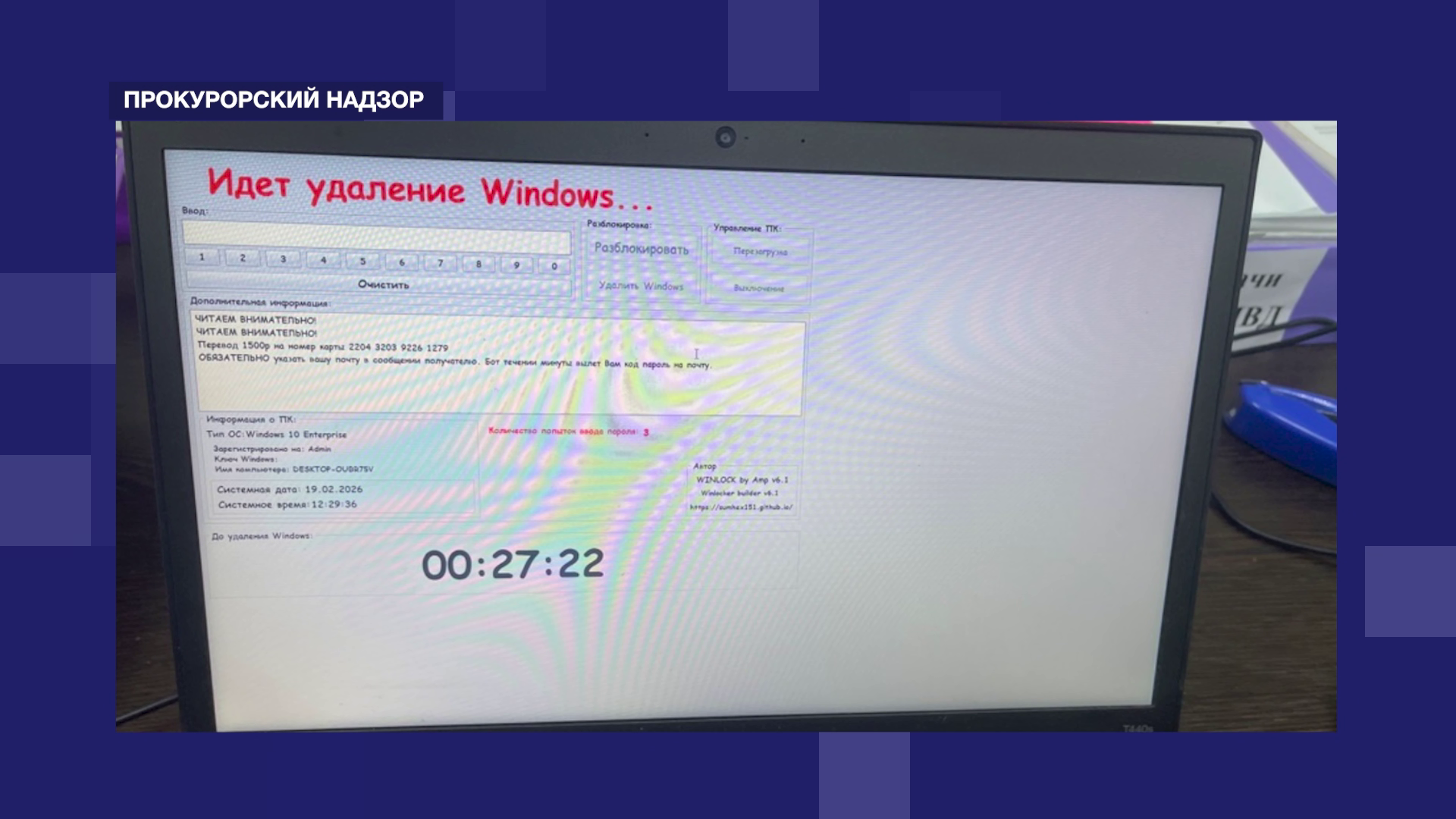 ЮРИЙ ЛАБЕЦ, заместитель прокурора Гагаринского района Севастополя: «По версии следствия, молодой человек оказывал услуги по ремонту компьютеров и бытовой техники. Желая получить дополнительный заработок, в мае 2025 года он продал одному из обратившихся к нему заказчиков записанную на карту памяти вредоносную компьютерную программу, инфицированную компьютерным вирусом. При ее запуске появляется сообщение о возможности получить пароль после оплаты на банковскую карту, а затем происходит блокирование и уничтожение компьютерной информации. В итоге персональный компьютер становится непригодным для дальнейшего использования».