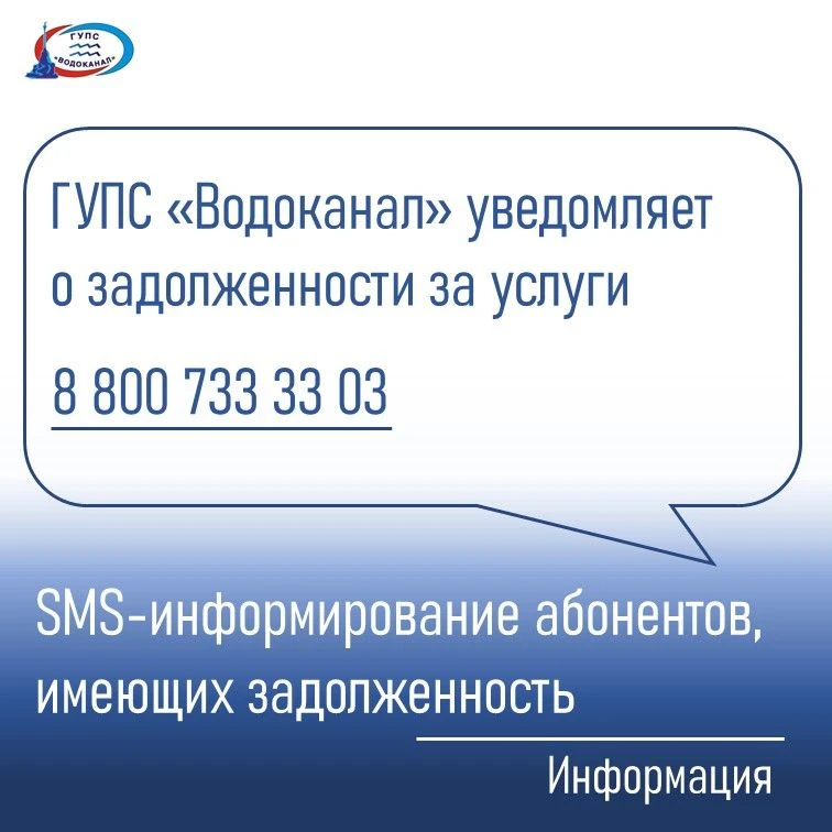 На телефоны абонентов, имеющих задолженность по оплате услуг водоснабжения и/или водоотведения и не обратившихся в ГУПС "Водоканал", приходят смс-уведомления.