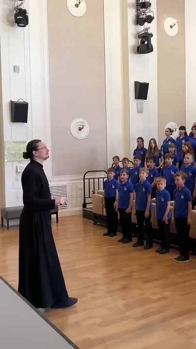 Репетиция сводного детского хора Крыма и Севастополя под управлением диакона Александра Амерханова к первому музыкальному фестивалю Александры Николаевны Пахмутовой, который состоится 6 мая на Грифон Арене