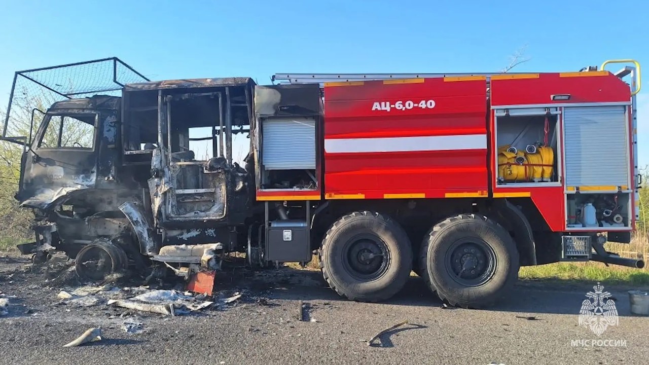 Об этом сообщает Главное управление МЧС по региону. Пожарные расчёты были атакованы во время работы на месте пожара. В результате атаки дрона пожарная автоцистерна уничтожена огнём. Личный состав не пострадал.