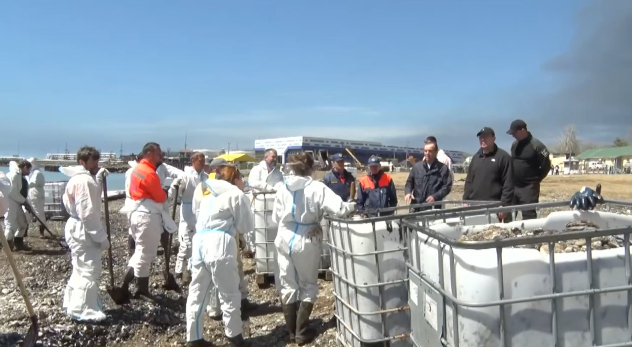 Разлив нефтепродуктов в Туапсе убирают 360 человек