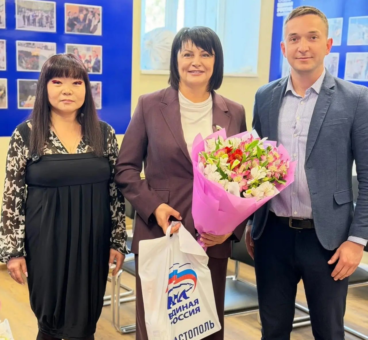 Депутатов Госдумы РФ от Севастополя Татьяну Лобач и Дмитрия Белика поздравили руководитель регионального исполкома партии Анастасия Пестова, ее заместитель Валентина Кайнова и председатель регионального Совета первичных отделений партии Игорь Сухно.