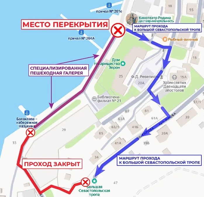 Ограничения коснутся участка от дома № 23 в сторону выхода из Балаклавской бухты, включая лестницу к БСТ.
