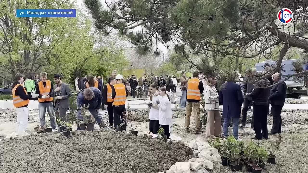 На улице Молодых строителей высадили более 150 деревьев и кустарников