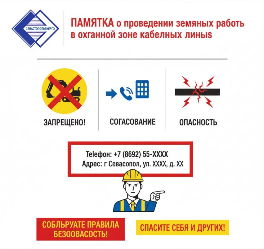 ПАМЯТКАо проведении земляных работ в охранной зоне кабельных линий на территории Севастопольского регионаВ целях обеспечения сохранности проложенных в земле кабельных линий, а также безопасности при проведении...
