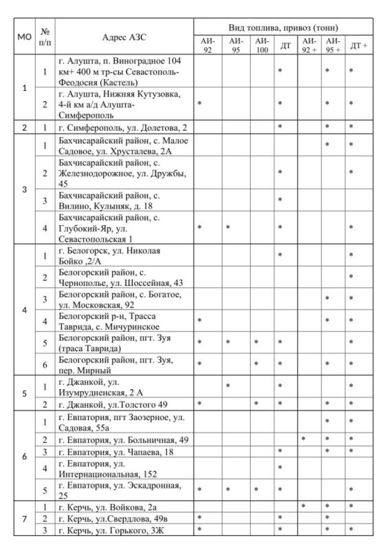 Подробный расклад — на фото.Симферополь:— ул. Севастопольская 260 (АИ-92)— ул. Объездная, 11 (АИ-95)— ул. Бородина, 67 (АИ-92)И другие:— г. Белогорск, ул. Николая Бойко, 2/А (АИ-92)— г. Феодосия, Керченское шоссе, 27/Д (АИ-92)—...